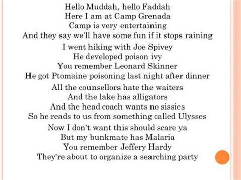- What are the lyrics to Hello Muddah, Hello Fadduh (A Letter from Camp)?